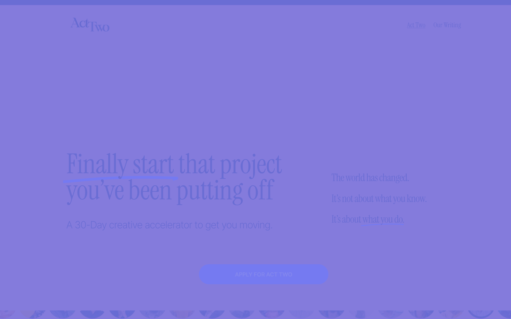 “Act Two was the best purchase I made all year. I have never felt such powerful, creative flow nor shared my time with such encouraging, inspiring people.”